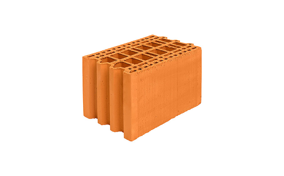 Блок керамический поризованный Porotherm 25M используется в строительстве несущих наружных стен с с дополнительным утеплением и внутренних несущих стен. Толщина стены составит 250 мм. Обладает тремя рядами утолщенных стенок – общая толщина которых составляет 32 мм.